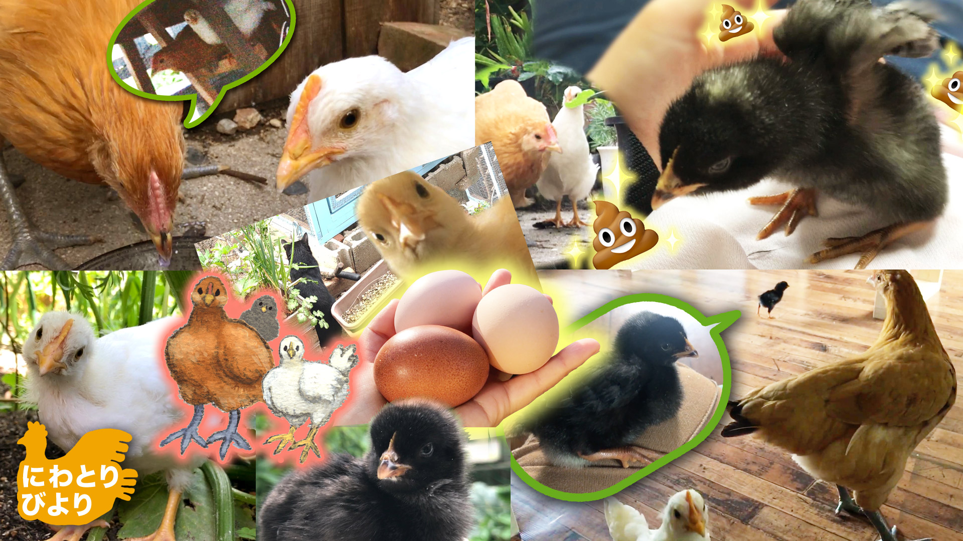 慣れてきたころ普通の動画も作りはじめました。ひよこから卵をうむまでの成長と、3羽のかわいい関係性の変化を記録しようと思います。鶏たちのありのままの姿を楽しんでください。